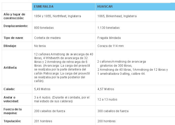 Principales características de los buques participantes en el Combate Naval de Iquique